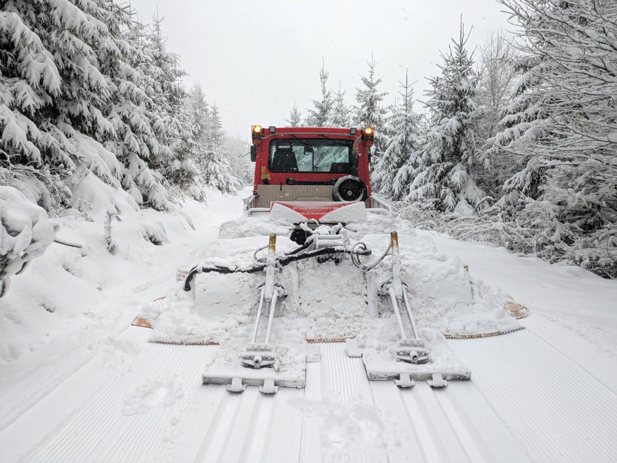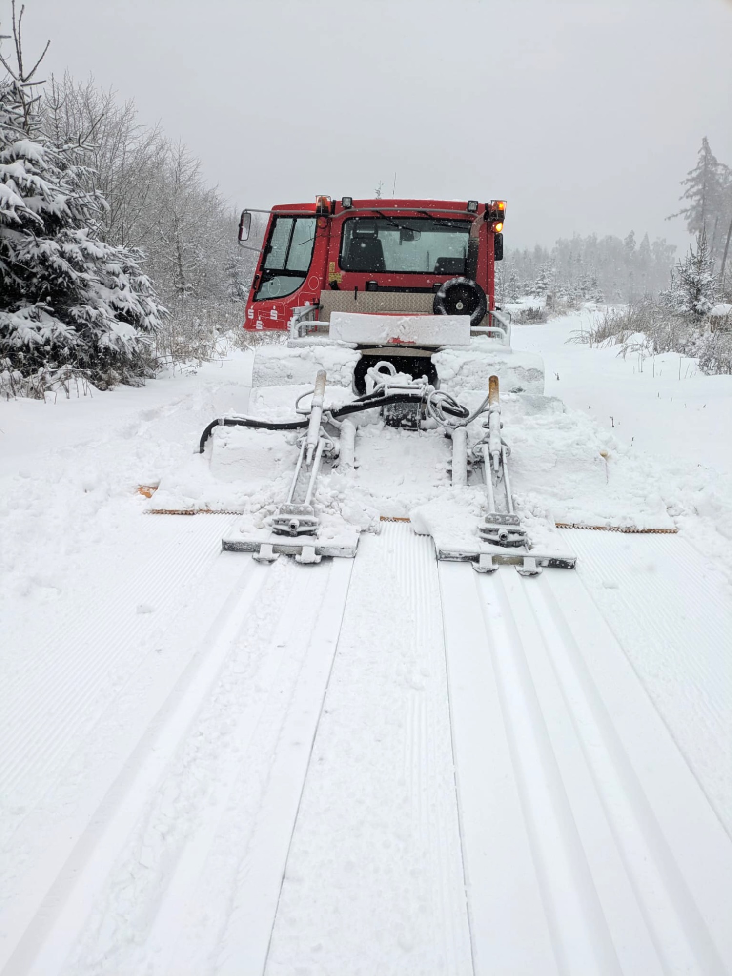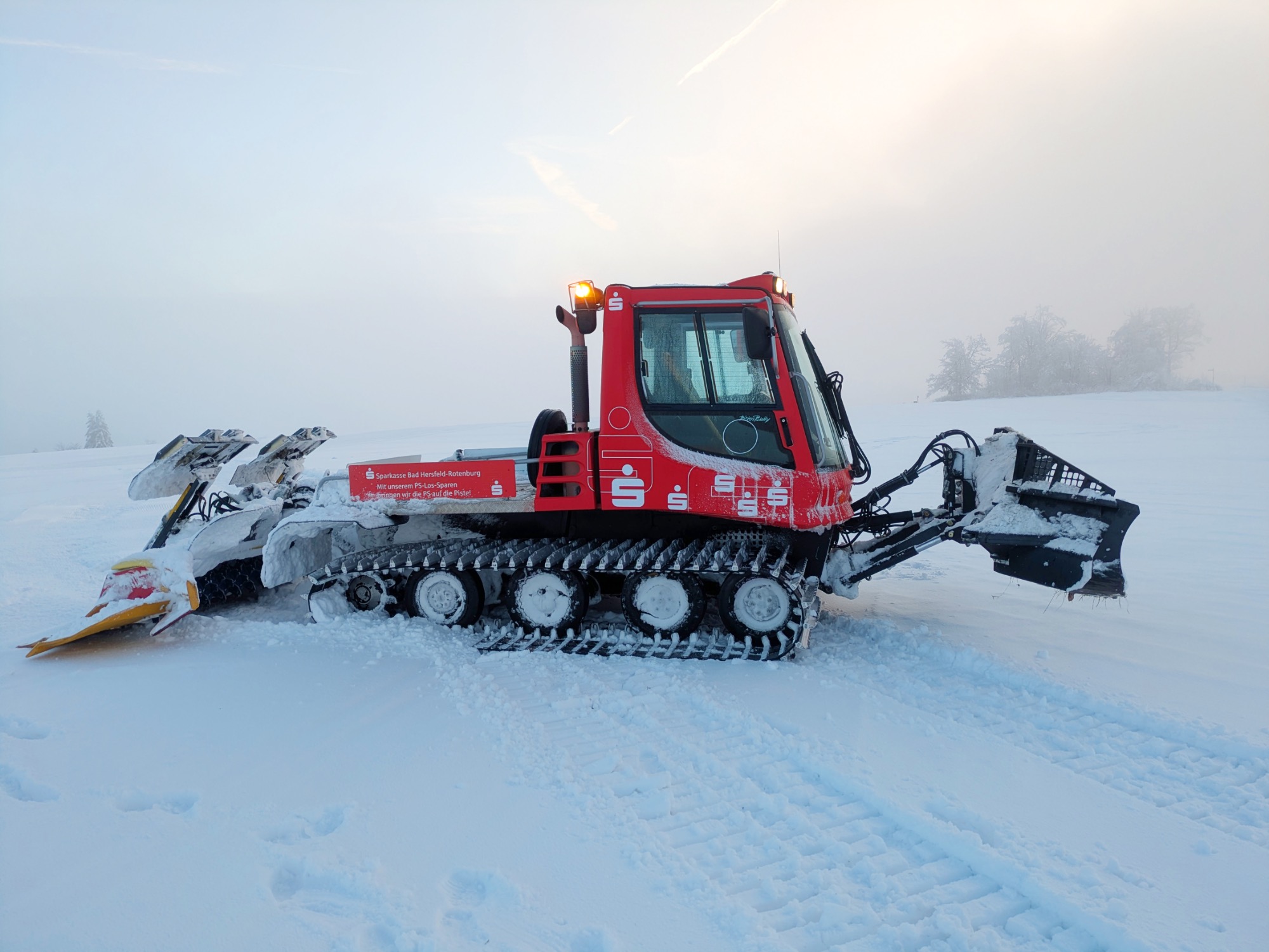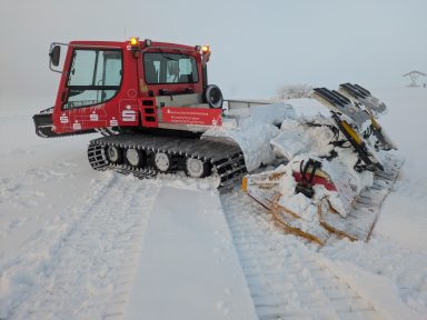 Unserem Aufruf zum Loipen-Spuren mit dem Pistenbully am Eisenberg sind 9 Personen gefolgt. Alle Personen wurden von der Firma Dehnhardt Landtechnik, Kevin Dehnhardt, eingewiesen und geschult. Aufgrund der guten Schneelage konnten alle Teilnehmer den Pistenbully fahren und mit dem Spurgerät arbeiten.