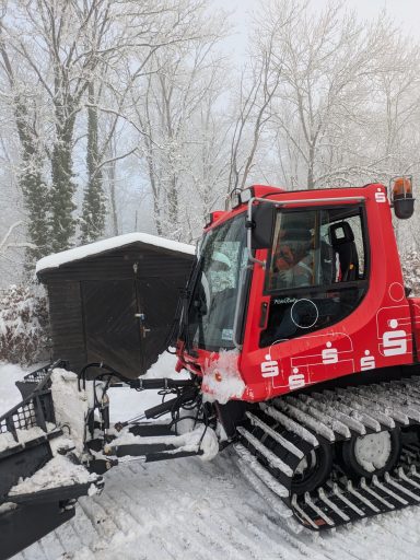 Unserem Aufruf zum Loipen-Spuren mit dem Pistenbully am Eisenberg sind 9 Personen gefolgt. Alle Personen wurden von der Firma Dehnhardt Landtechnik, Kevin Dehnhardt, eingewiesen und geschult. Aufgrund der guten Schneelage konnten alle Teilnehmer den Pistenbully fahren und mit dem Spurgerät arbeiten.